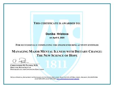 My certification with the leading nutrition psychiatrist Dr. Georgia Ede aligns with my approach that what we eat is the most impactful factor on both-physical and mental health.