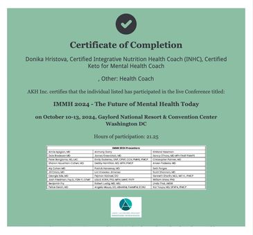 Integrative Nutrition and Keto for Mental Health Coach, Mastery Method Life Coach